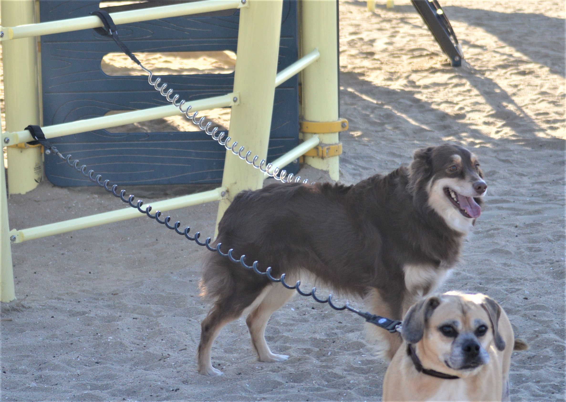 Whether you are visiting a pet-friendly hotel or seeing the sights in a new city, you already know that other dogs will be present when you arrive. Our hands free / tangle free leash lines allow you to easily move and secure your dog to another location if fellow canines seem to threaten your dogs’ space without disrupting fellow vacationers and maintaining a stress-free experience for you and your dog.